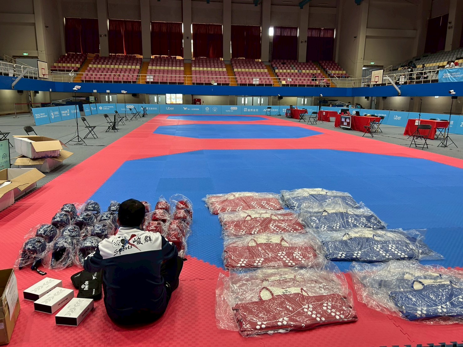 空手道比賽現場(賽前佈置-全場地毯滿鋪)