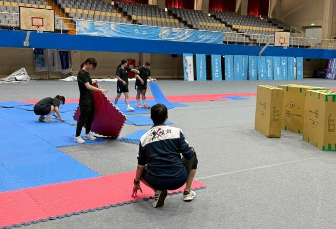 空手道比賽現場(賽前佈置-空手道墊施作)