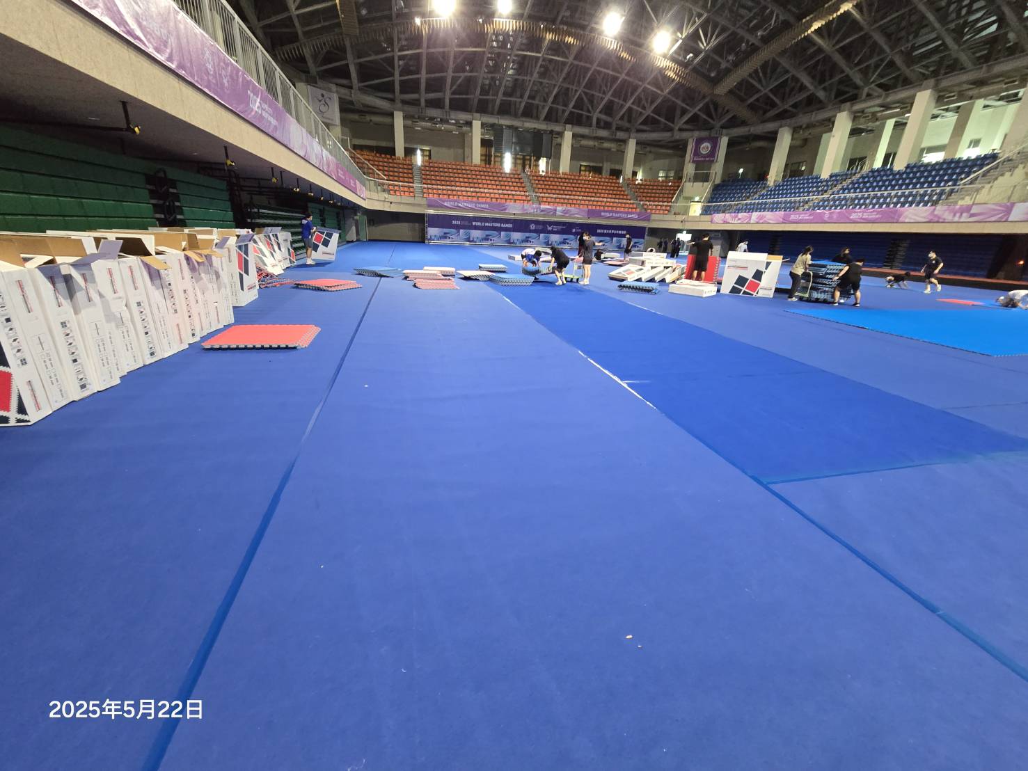空手道比賽現場(賽前佈置-全場地毯滿鋪完成)