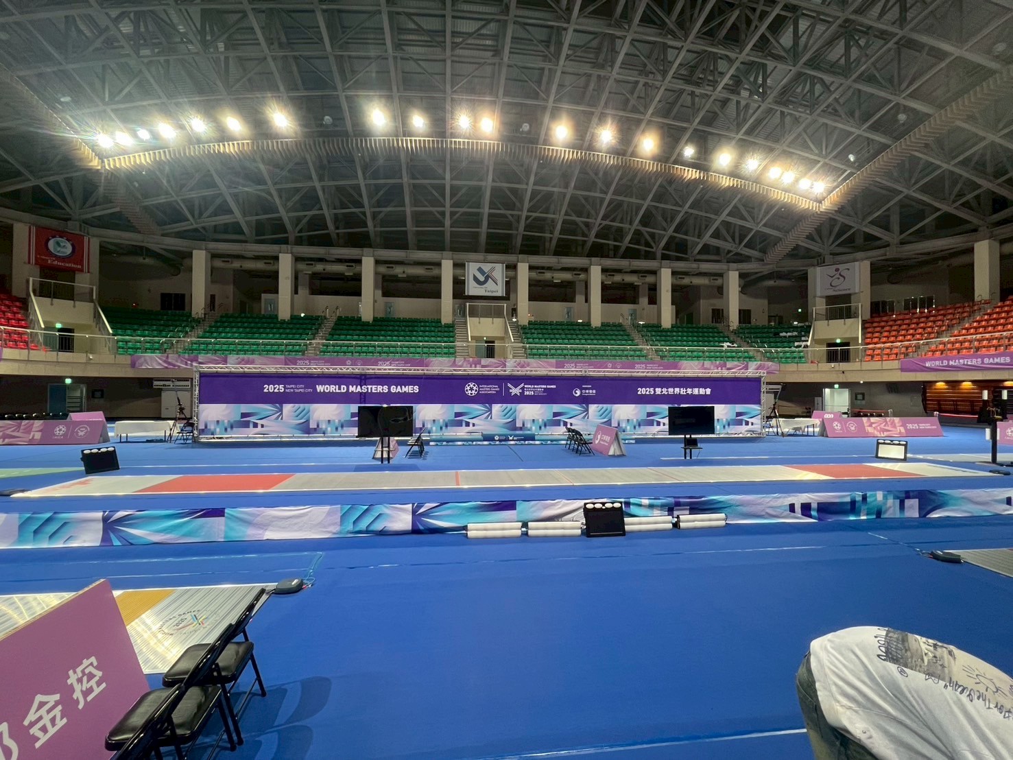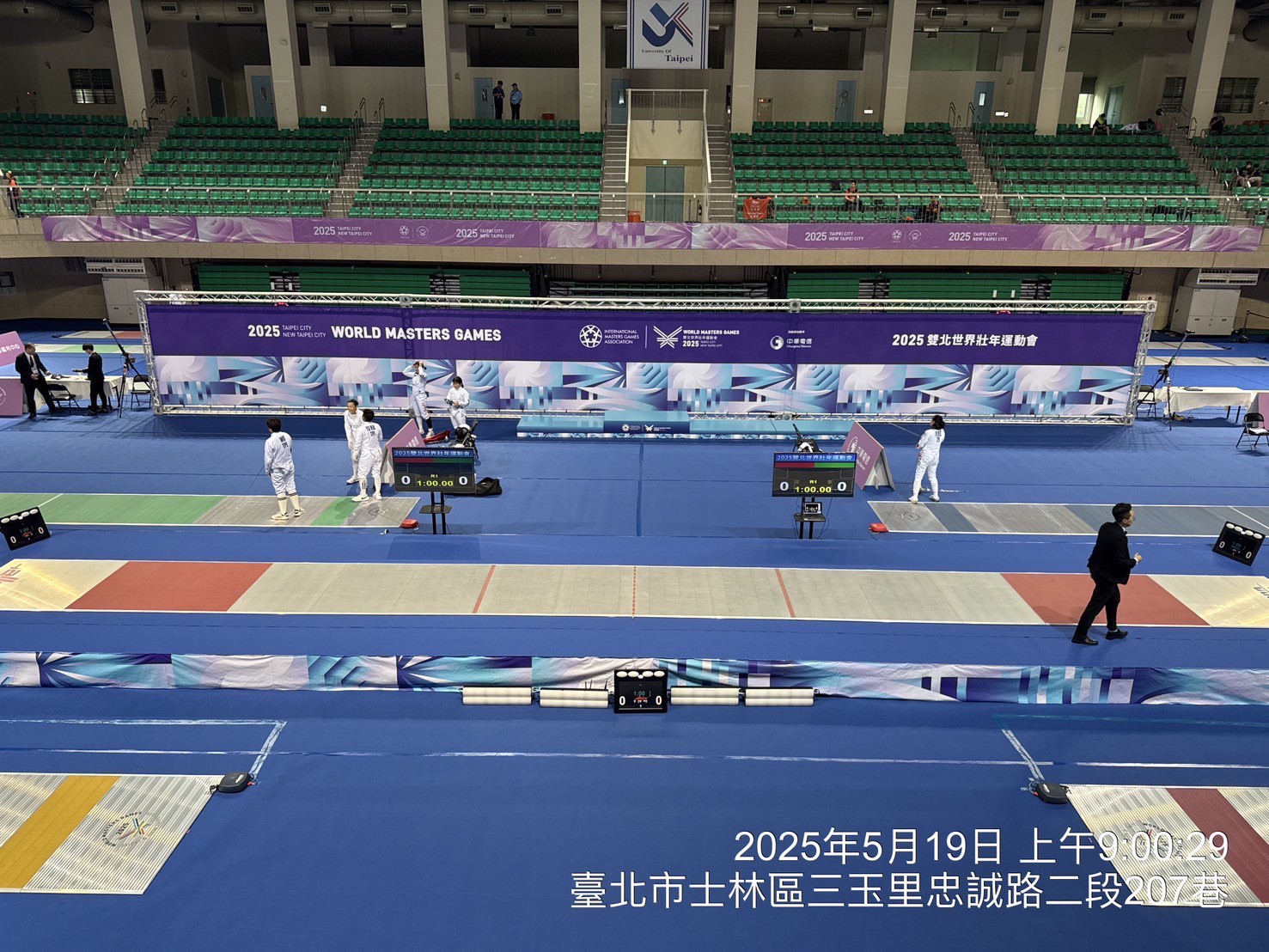 擊劍比賽現場(賽前佈置 比賽劍道+計時計分儀器)