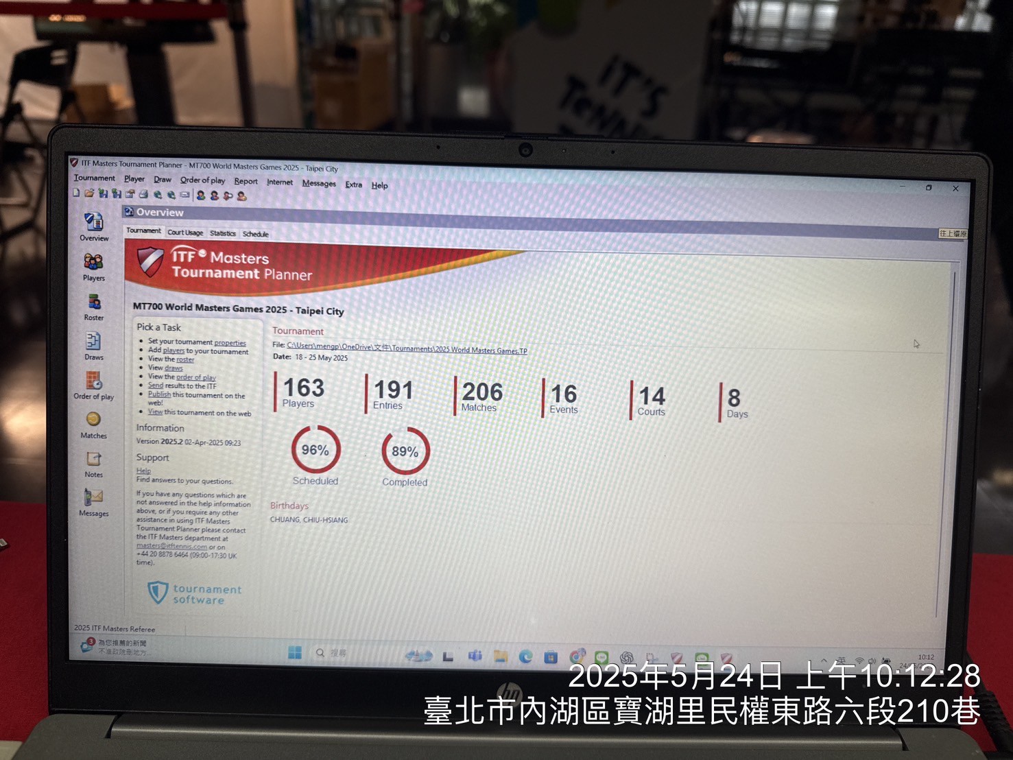 網球比賽現場(本公司為世壯運官方贊助商)
