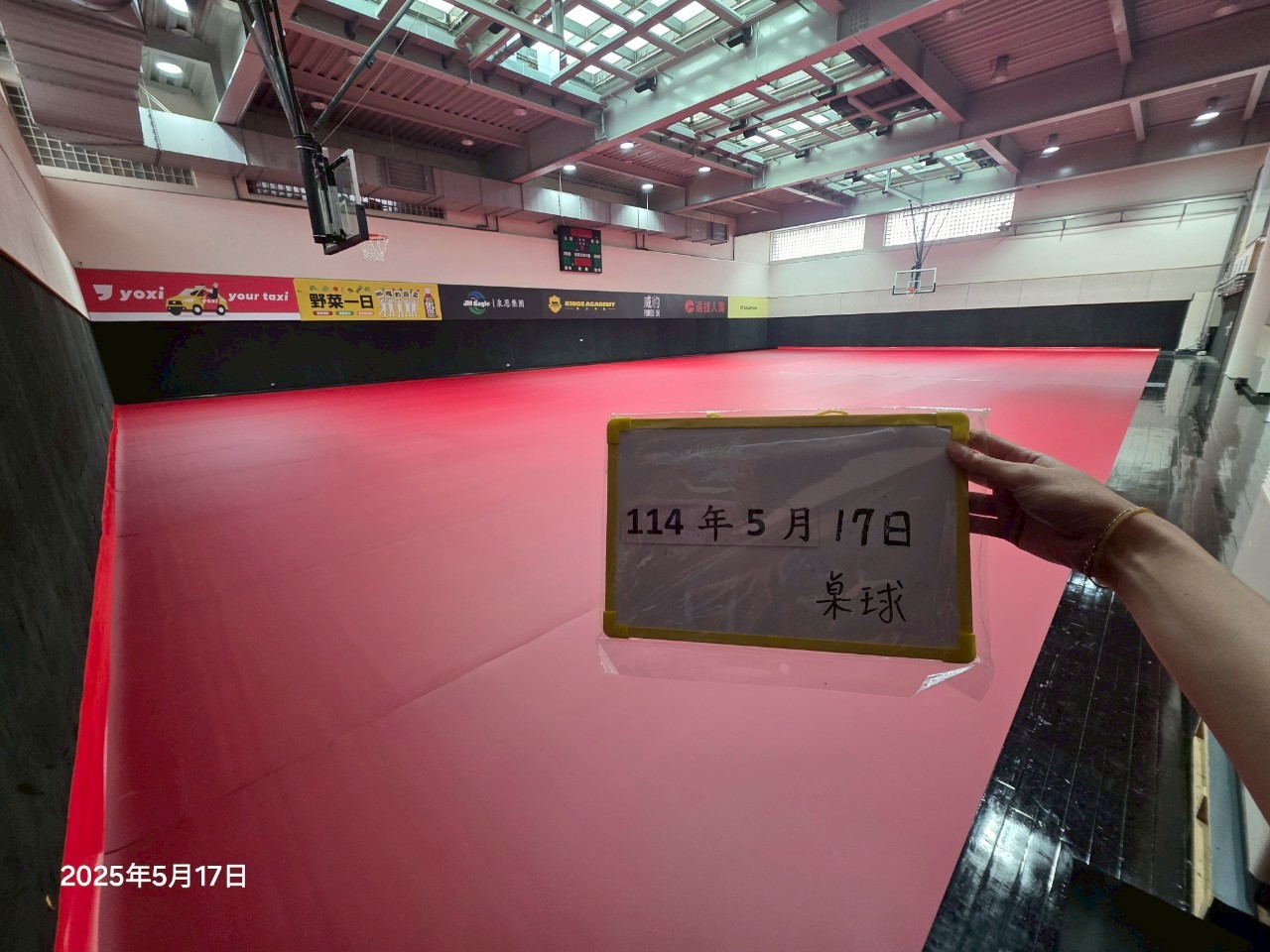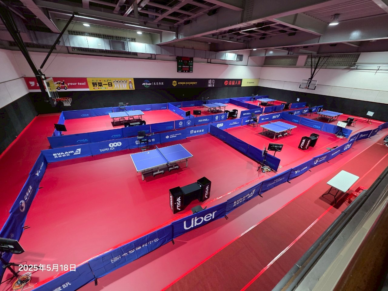 桌球比賽現場(賽前佈置-桌球地墊鋪設完成)