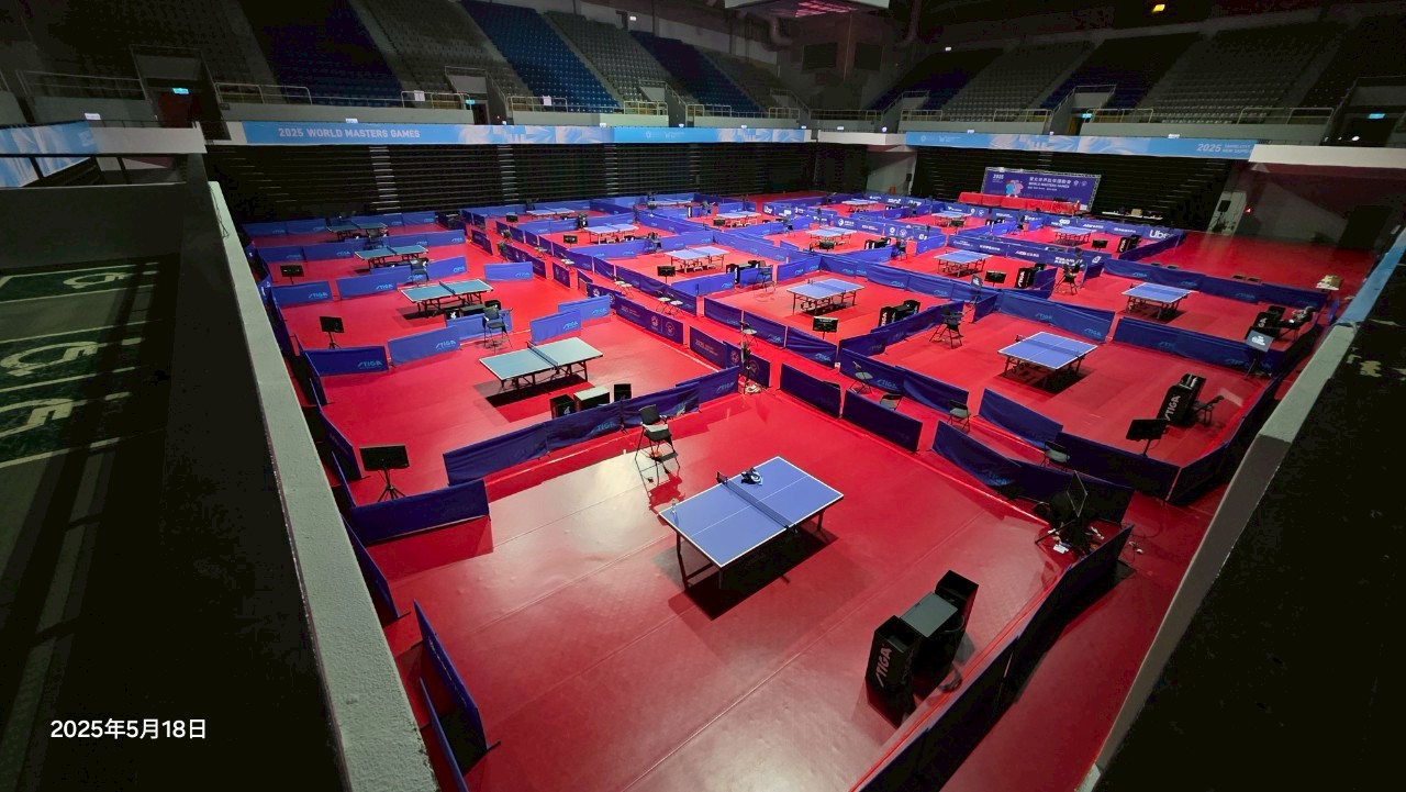桌球比賽現場(主場地24球桌競賽區佈置完成)