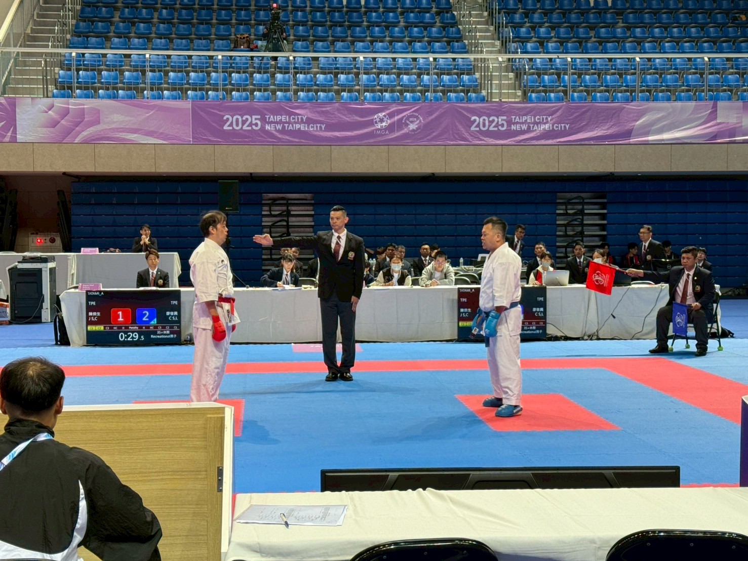 空手道比賽現場(對打項目比賽中)