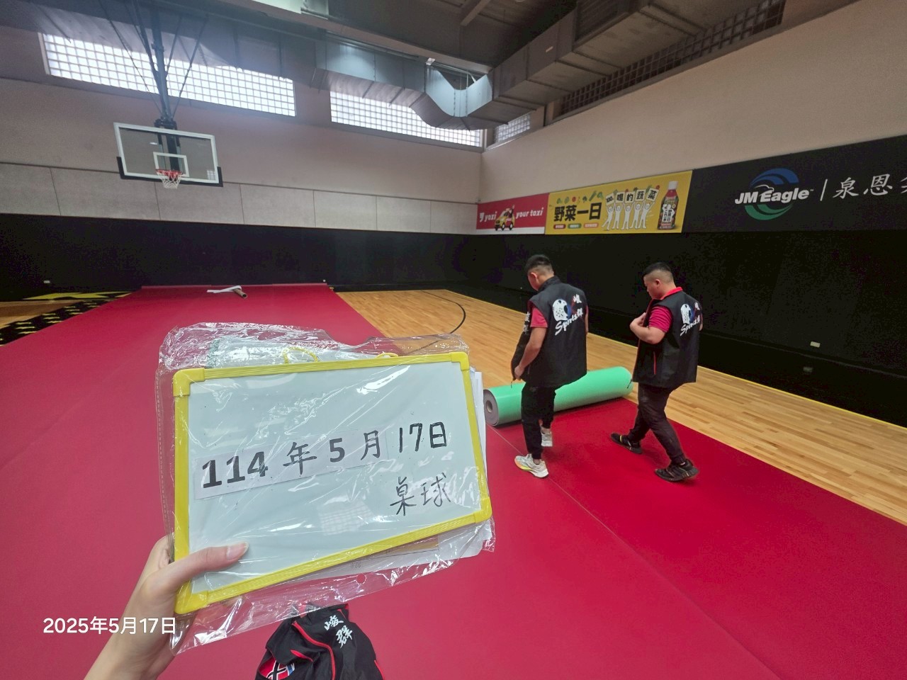 桌球比賽現場(賽前佈置-桌球地墊鋪設)