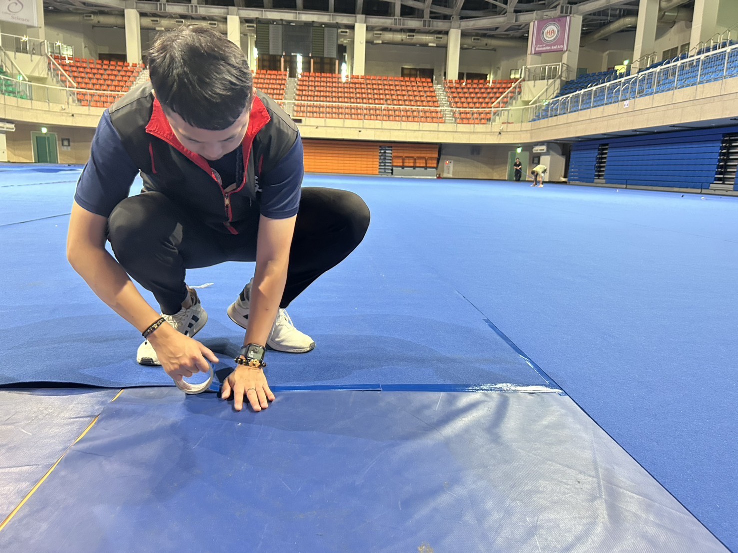 跆拳道比賽現場(地毯施作中)